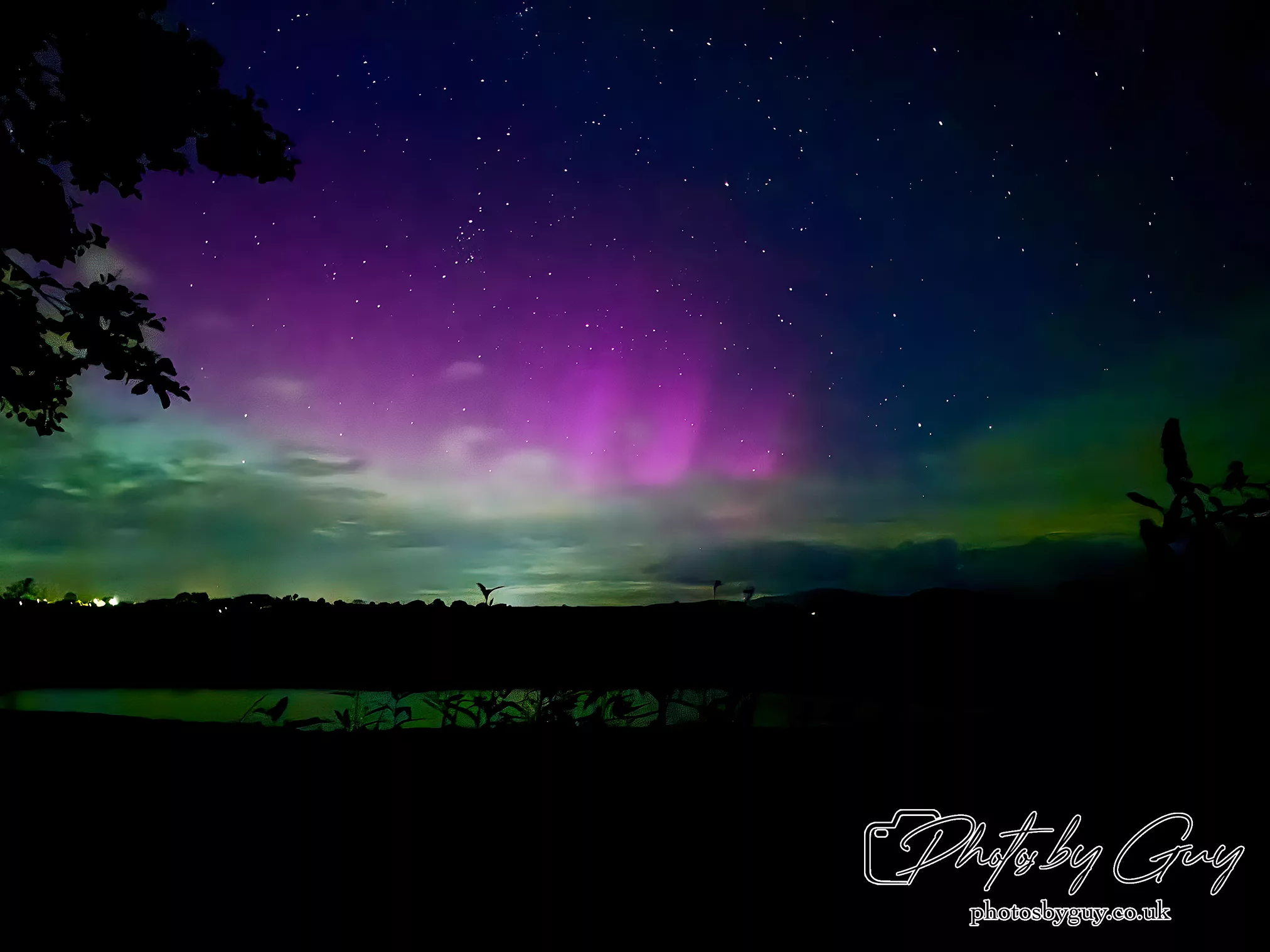 Tonight the skies were clear and there was a forecast for the persoid meteor shower and maybe the Northern Lights. I headed out and within five minutes had spotted 5 or 6 shooting stars and then the sky started to turn purple, there were streaks of white and green as the lights danced, visable again with the naked eye, of course through the camera lense the true colours came out, and we spent a good hour watching the display until the clouds moved in and lights dimmed. This is the second time this year we have seen the lights and each time is an honour.