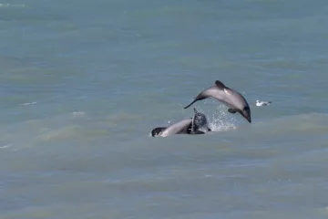 As we approach Kaikōura the road started to follow the bright blue coast line through tunnels carved out of the steep cliffs, and it wasn’t long before we pulled over having spotted Fur Seals just lazing by the road. We spent a while watching the, and taking photos in the very bright sun, before spotting something in the sea, it was a Super Pod of Dusky Dolphins moving towards Kaikōura!