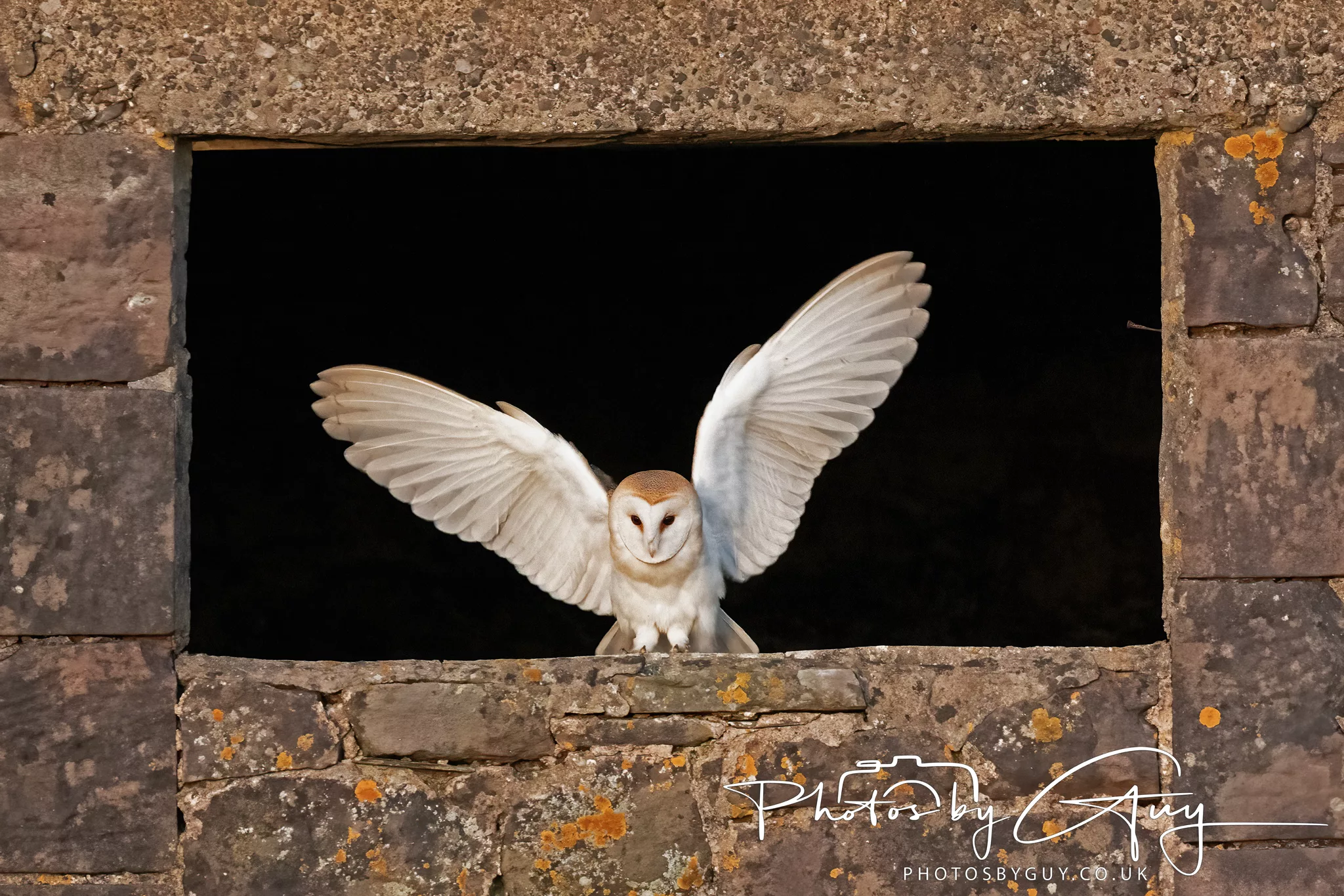 Tonight the grey weather disappeared for a short while and so I took a trip up to see how the Barn Owls were doing. The sun was in and out and the barn was either grey or red, and just when I was thinking it was a no show the female Owl appeared at the window, it stayed for a few mins then went back in, the it came back and sat a little long and then flew back in, finally it reappeared and then flew off to hunt just as the sun set.