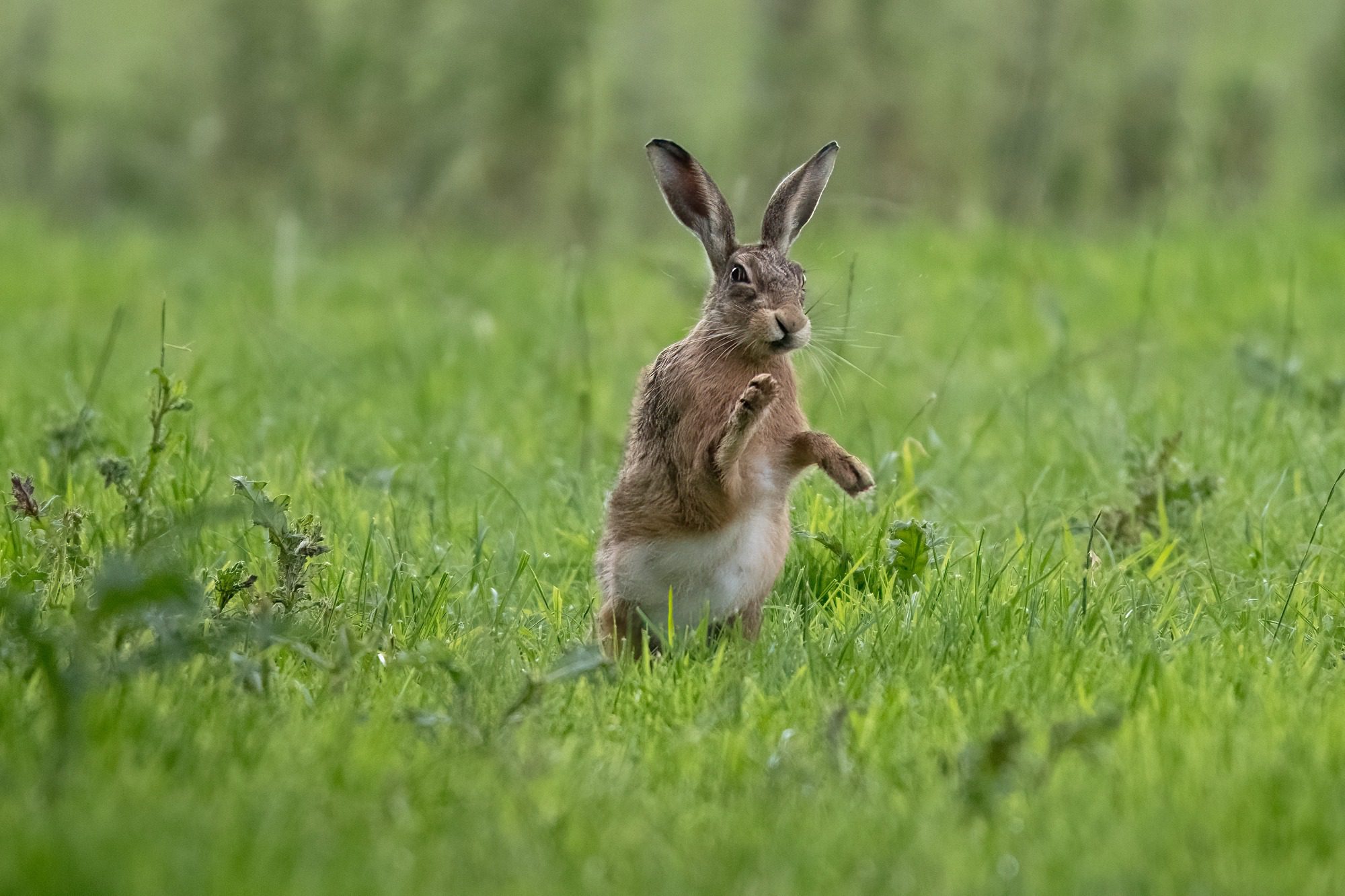 I spooked him and he shot up and ran in a big loop before coming back towards me, he stopped and then sneezed and rubbed his nose, so I guess Hares also suffer from hayfever.