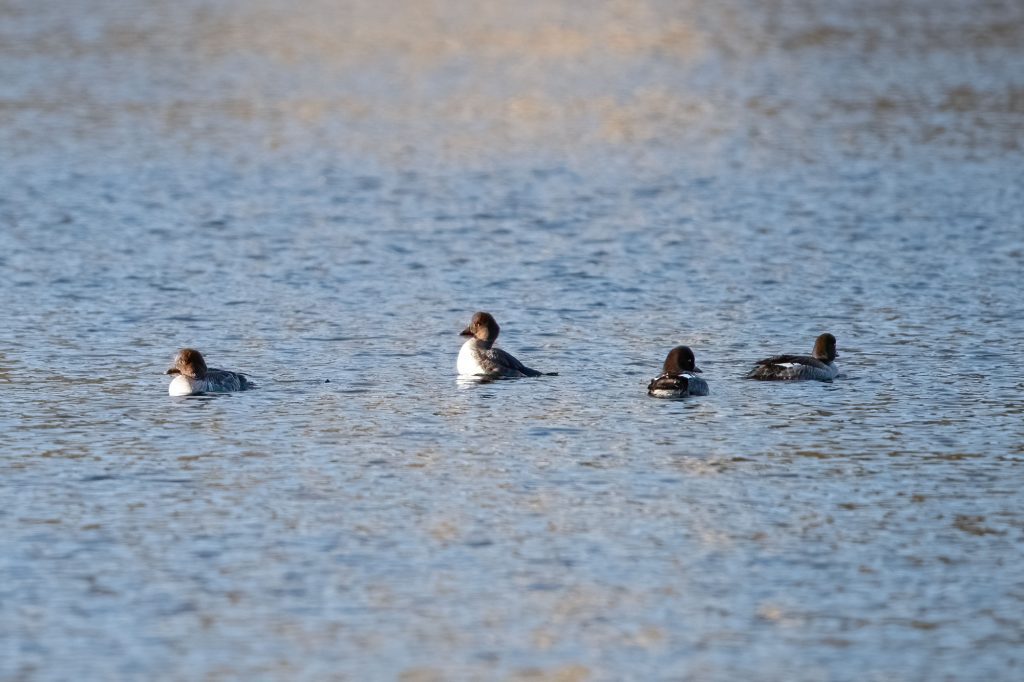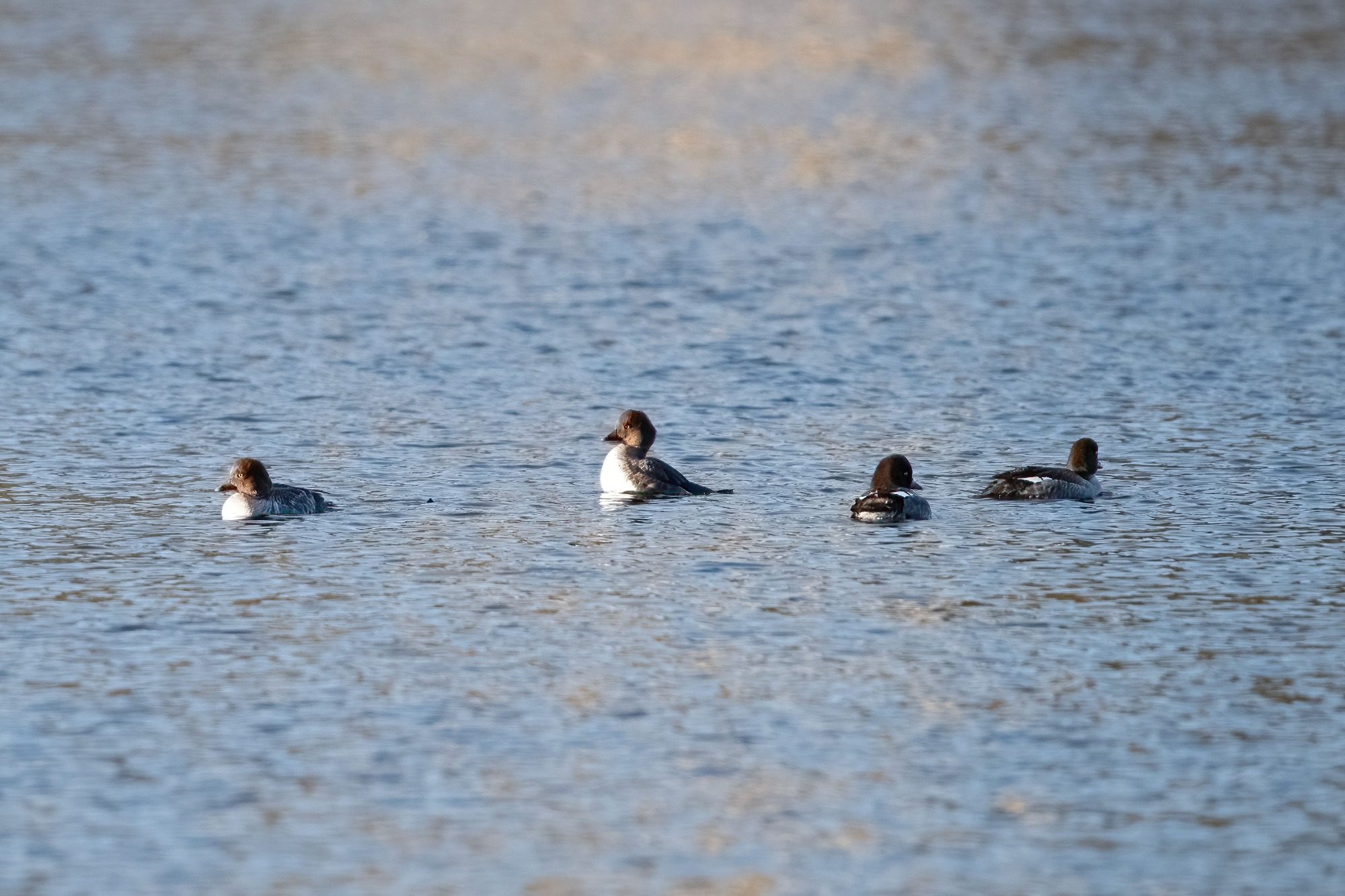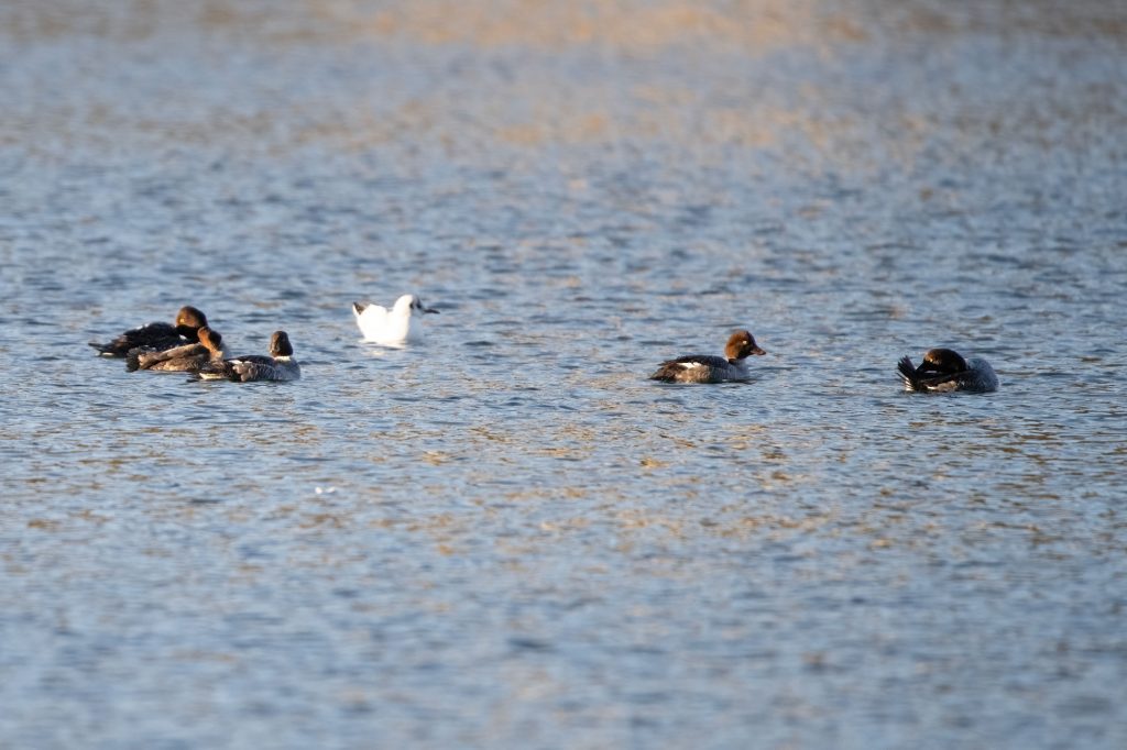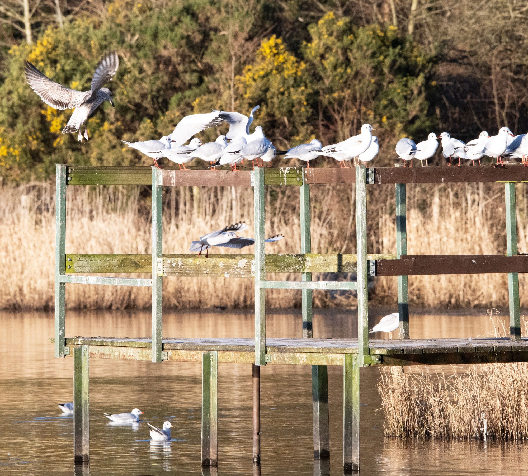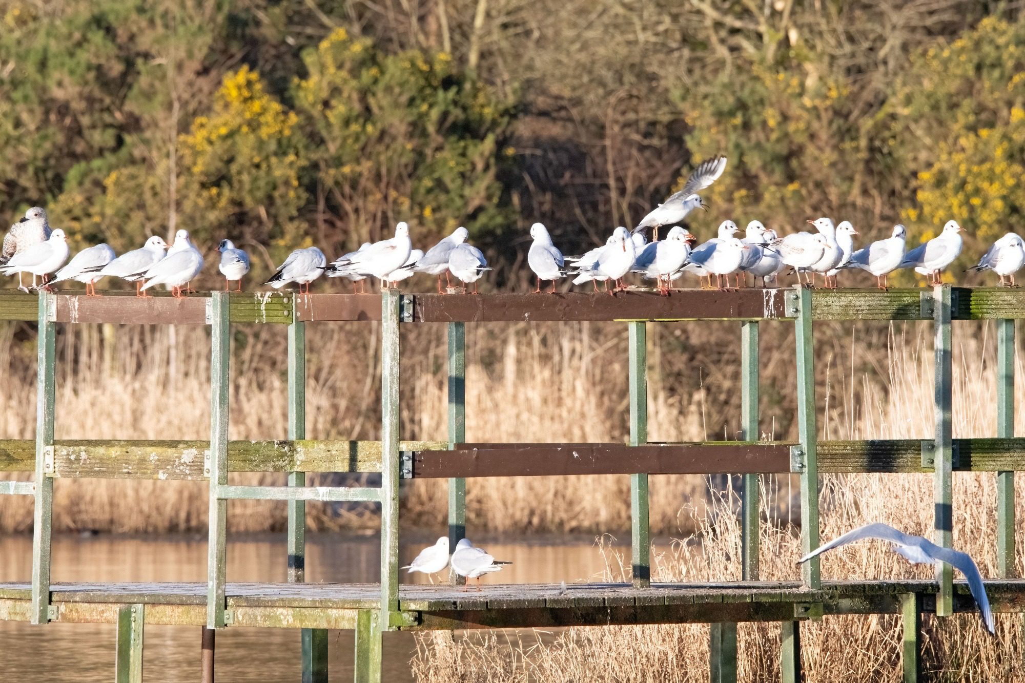 Golden eye were in the middle of lake, more females than males, and then around the edges there were at least a dozen Little Grebes. The Herring gulls were there in force as normal and most were perched on the landing stage.