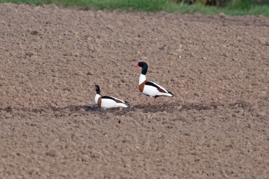 An odd sight was a pair of Shelduck in a freshly ploughed field, I can assume settling for the evening although there was no water anywhere near.