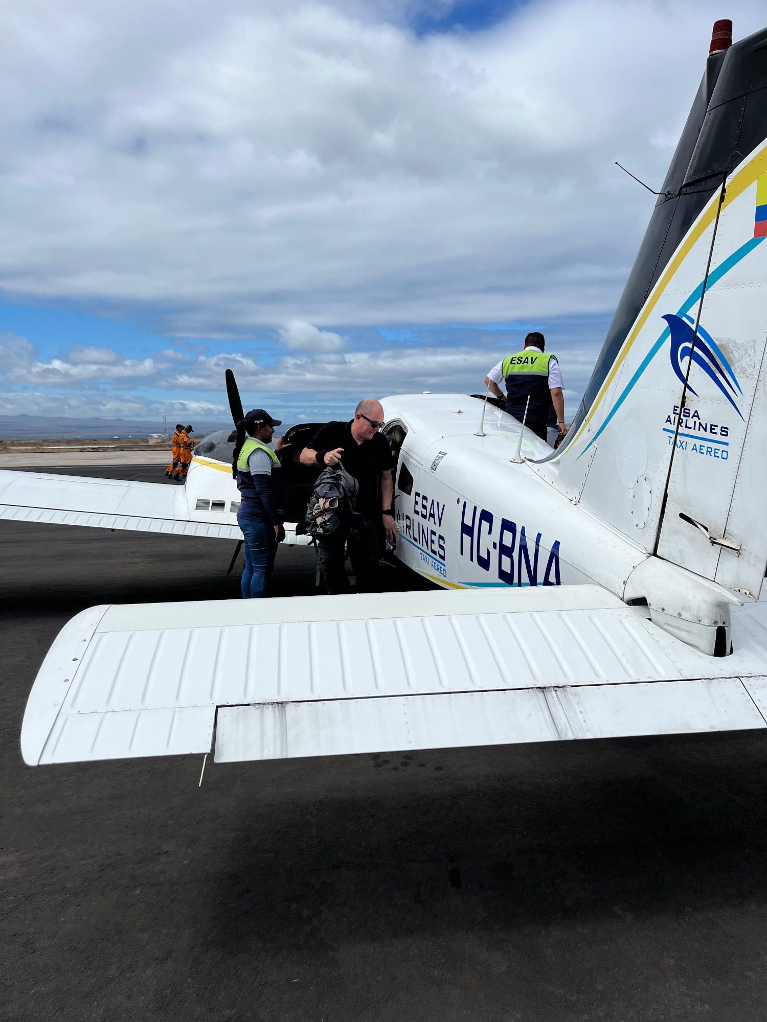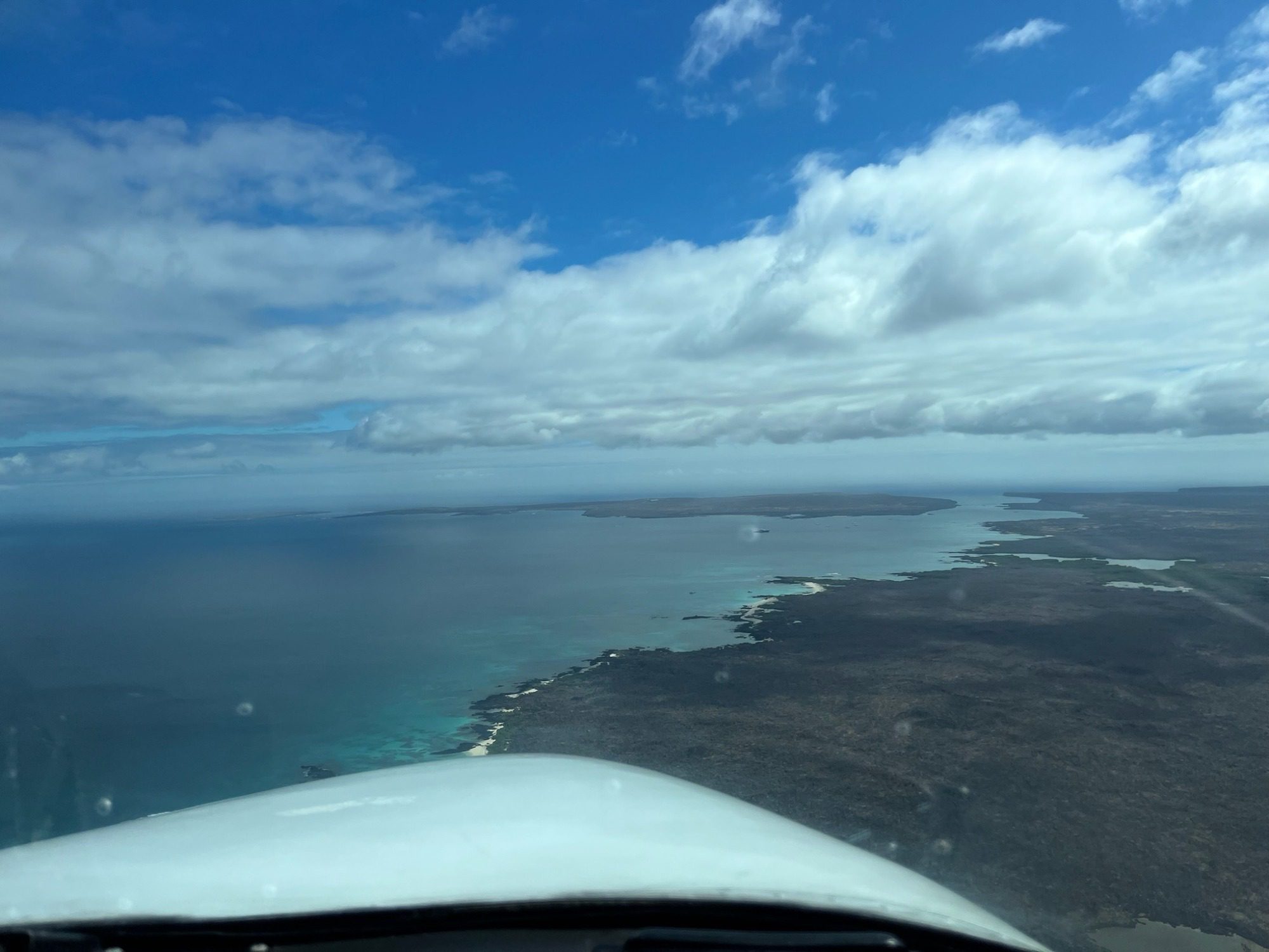 We left Isabela early in the morning, traveling to the third of our Islands of Santa Cruz. We flew in a small twin prop plane, seating six people, to the island of Baltra which is an small island just off the coast of Santa Cruz, and the site of an old American airforce base which now serves as the main airport for Santa Cruz. The flight took about 40 minutes and the plane so small Tracey sat in the co pilots seat while I was squeezed into the back! The views were amazing and we landed safely without incident, grabbed our bags, met our guid and headed off for our ferry to Santa Cruz