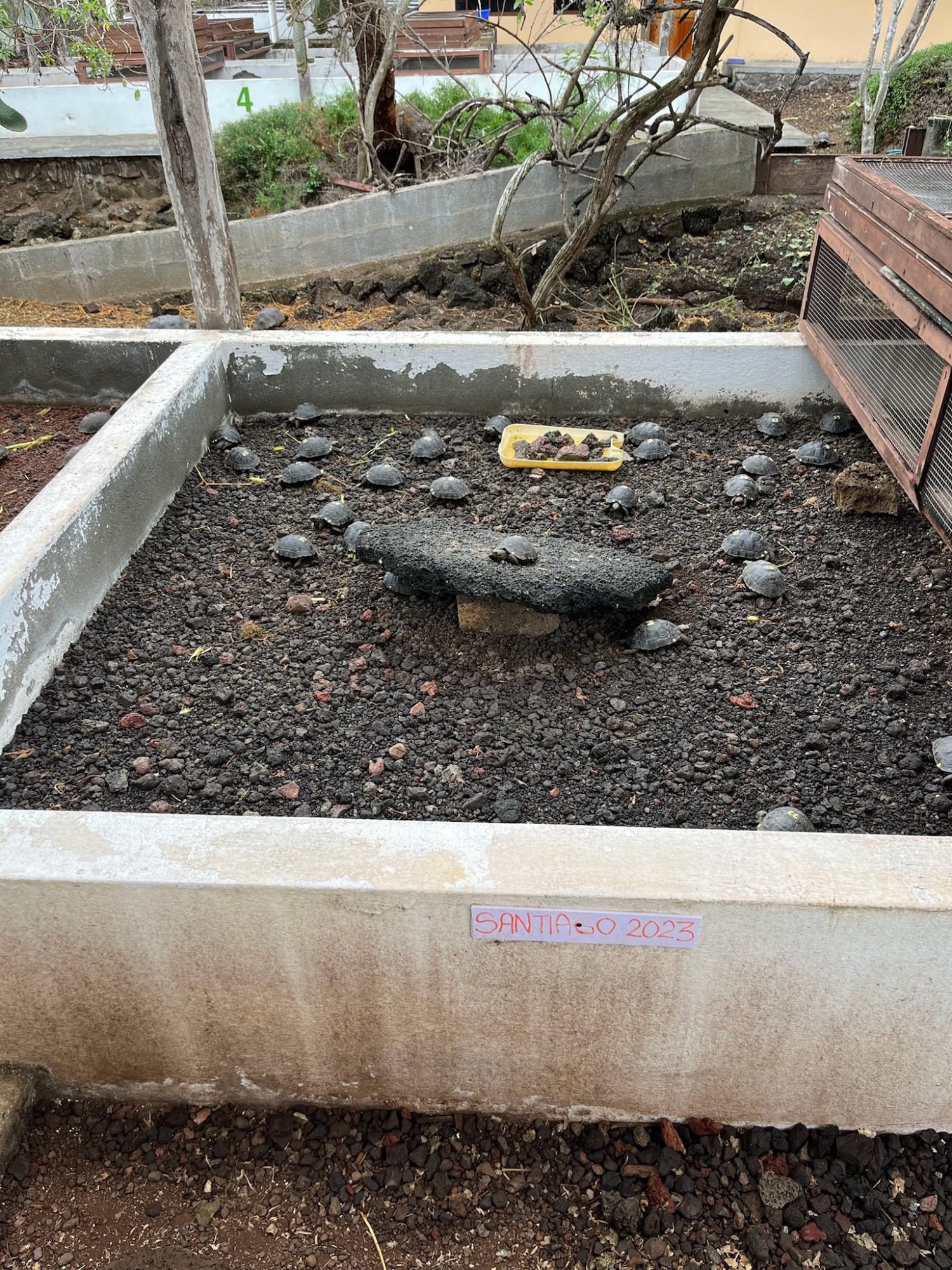 We started the day with breakfast looking over the hotel swimming pool, watching the Pintail ducks, Lava Gulls and a Blue Heron relaxing around the pool edges! then it was a ten minute walk to the water taxi and a five minute boat ride to Peurto Ayora. Here we took a taxi to the Darwin Research Centre. The centre does great work on protecting the Galapagos endemic species and righting the wrongs done by past island visitors, who decimated the Tortoise population and brought disease and pests that threaten so many other species like the Vermillion Flycatcher we saw on Isabela island. Its mani work though is breeding and releasing Giant Tortoises.