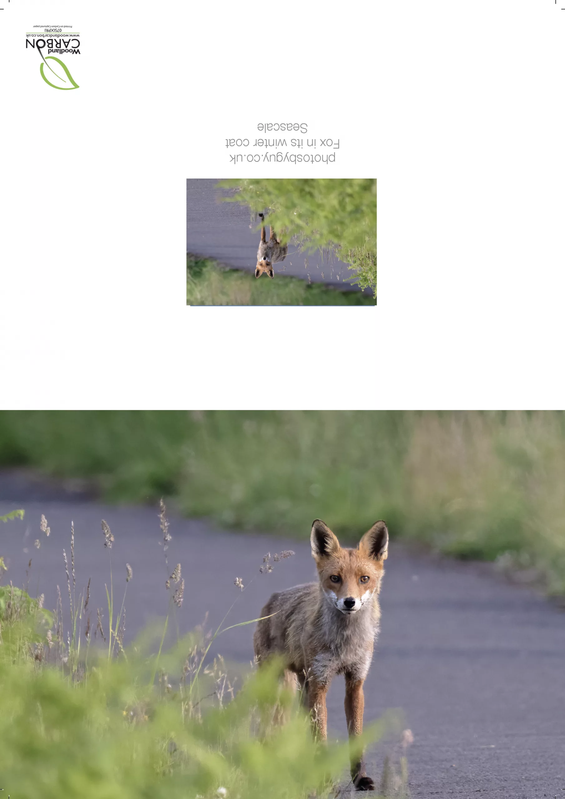Greetings card – blank insideFox in its winter coat near to Seascale in Cumbria