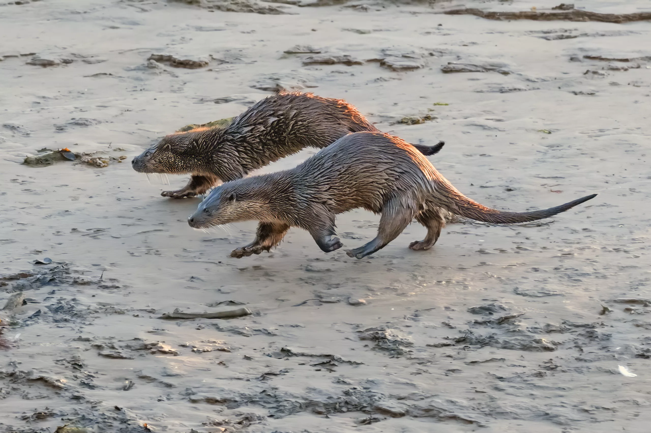 Two Otters, a mother and young in West Cumbria